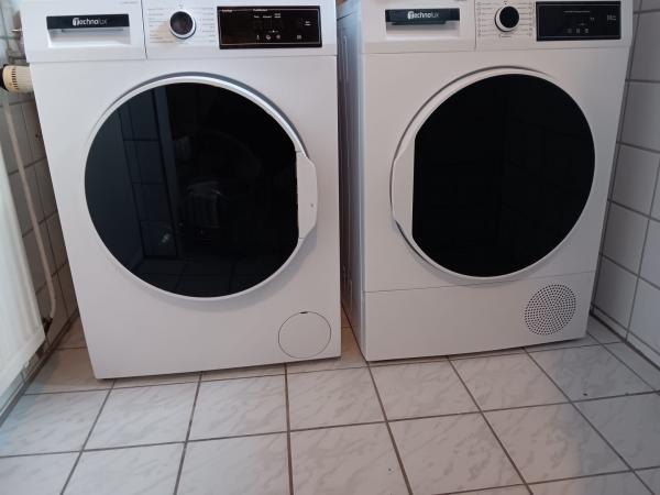 Badewanne, Dusche, Föhn, Handtücher, Trockner, Waschmaschine, WC, Wäscheständer